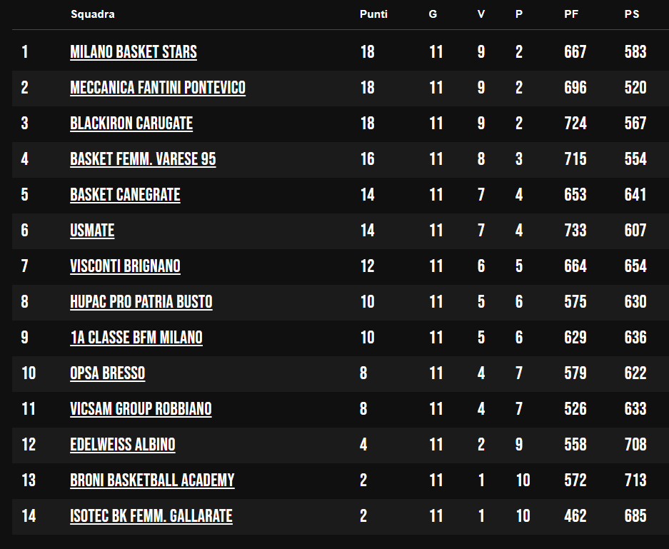 Ora all’orizzonte c’è l’ultima partita dell’anno: sabato prossimo in casa contro Milano Basket Stars è sfida d’altissima classifica e l’occasione per Meroni e compagne di mettere le mani sulla stagione prima di dedicarsi assieme ai tifosi e agli amici al Natale e al meritato riposo.