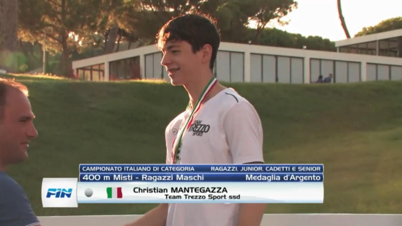 Ma le soddisfazioni per il team abduano non erano finite e sono infatti proseguite quando a scendere in vasca è stato Cristian Mantegazza. Seppur giovanissimo (è un classe 2005 e si è dovuto confrontare con atleti anche di due anni più grandi), il trezzese ha fatto il secondo posto assoluto e record italiano (ha chiuso in 4’29”34) per la sua età nei 400 misti. Ha fatto un nuovo personale nei 100 rana (1’06”3), dove è giunto sesto, ha fatto bronzo nei 200 rana e nuovo record italiano di categoria (2’21’1) e un altro terzo posto (con conseguente record) è arrivato nei 200 misti (ha chiuso in 2’08”8).