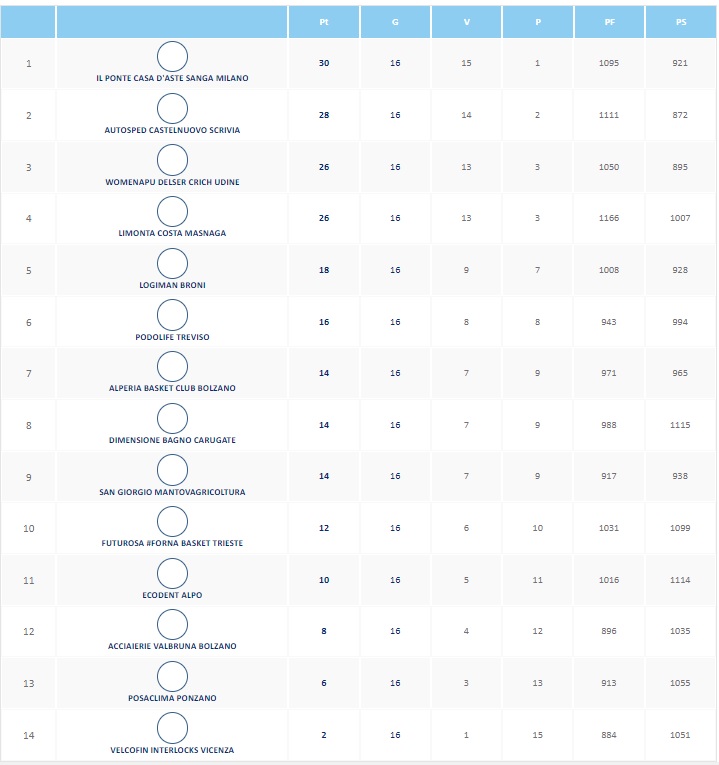 Pronostico purtroppo rispettato nel derby milanese, Dimensione Bagno Carugate non espugna il campo della capolista Sanga Milano. Regge per due quarti, ma cede nel terzo a una panchina straordinariamente lunga delle orange milanesi che fa la differenza: infatti sono 32 i punti a segno dalla panchina del Sanga contro i soli 5 della panchina di Carugate.