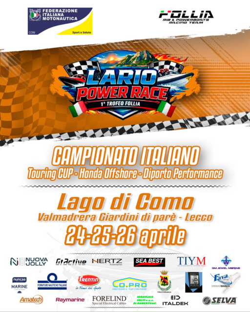 La Lario Power Race si presenta subito come un evento di primo piano nel panorama nazionale, con ben tre titoi del Campionato Italiano in palio: Touring Cup, Honda Offshore e Diporto Performance.