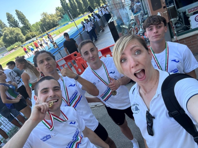 La prima a non deludere le attese è stata Federica Stella che, pur con un sorriso dolcissimo, nelle gare importanti sfodera i suoi artigli e conquista l’argento nel salto in alto con un ottimo 1,76m. Il giorno successivo la 4×100 con Davide Strazza, Mattia Fedeli, Giulio Mandelli e Anthony Palermo che conquistano il bronzo con dei cambi perfetti, mentre la “ciliegina” arriva alla fine delle tre giornate con una 4×400 da brivido di Davide Piciaccia, Stefano Bolis, Stefano Recalcati e Mattia De Rocchi che, nonostante la “caduta e ripresa al volo” del testimone all’ultimo cambio, conquista un oro incredibile.