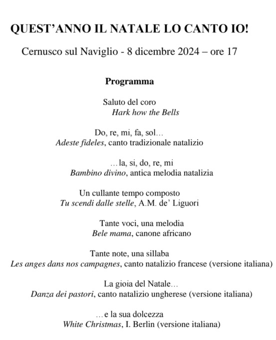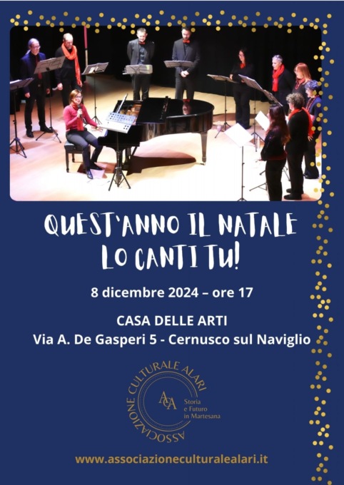 Anche quest’anno a Cernusco sul Naviglio il Natale lo canta il pubblico. Domenica, alla Casa delle arti l’Associazione Alari riproporrà lo spettacolo che ha riscosso grande entusiasmo nella sua prima edizione del 2023.
