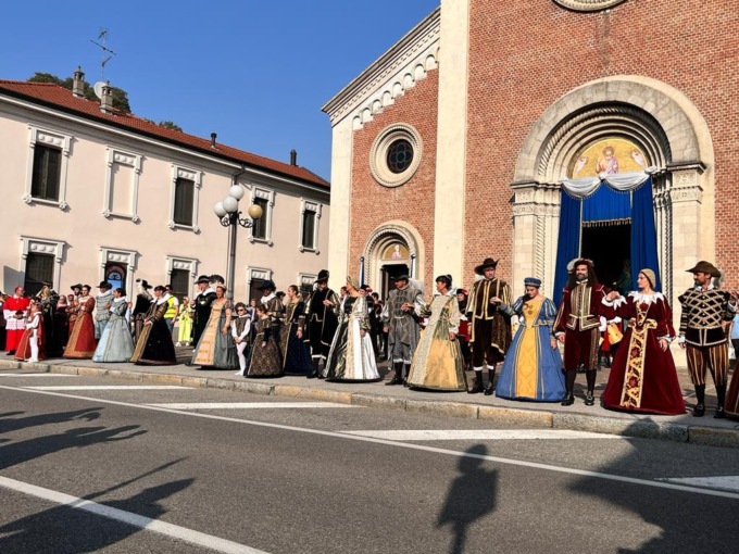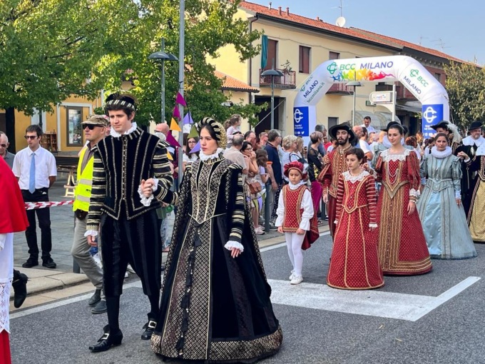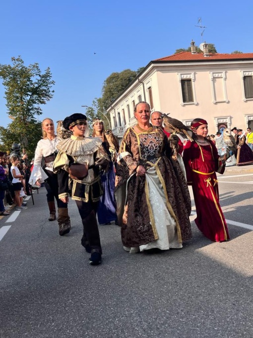 Cinquantesima edizione della Sagra della Paciarèla di Gessate, con falconieri, sbandieratori e la sfilata in costume storico