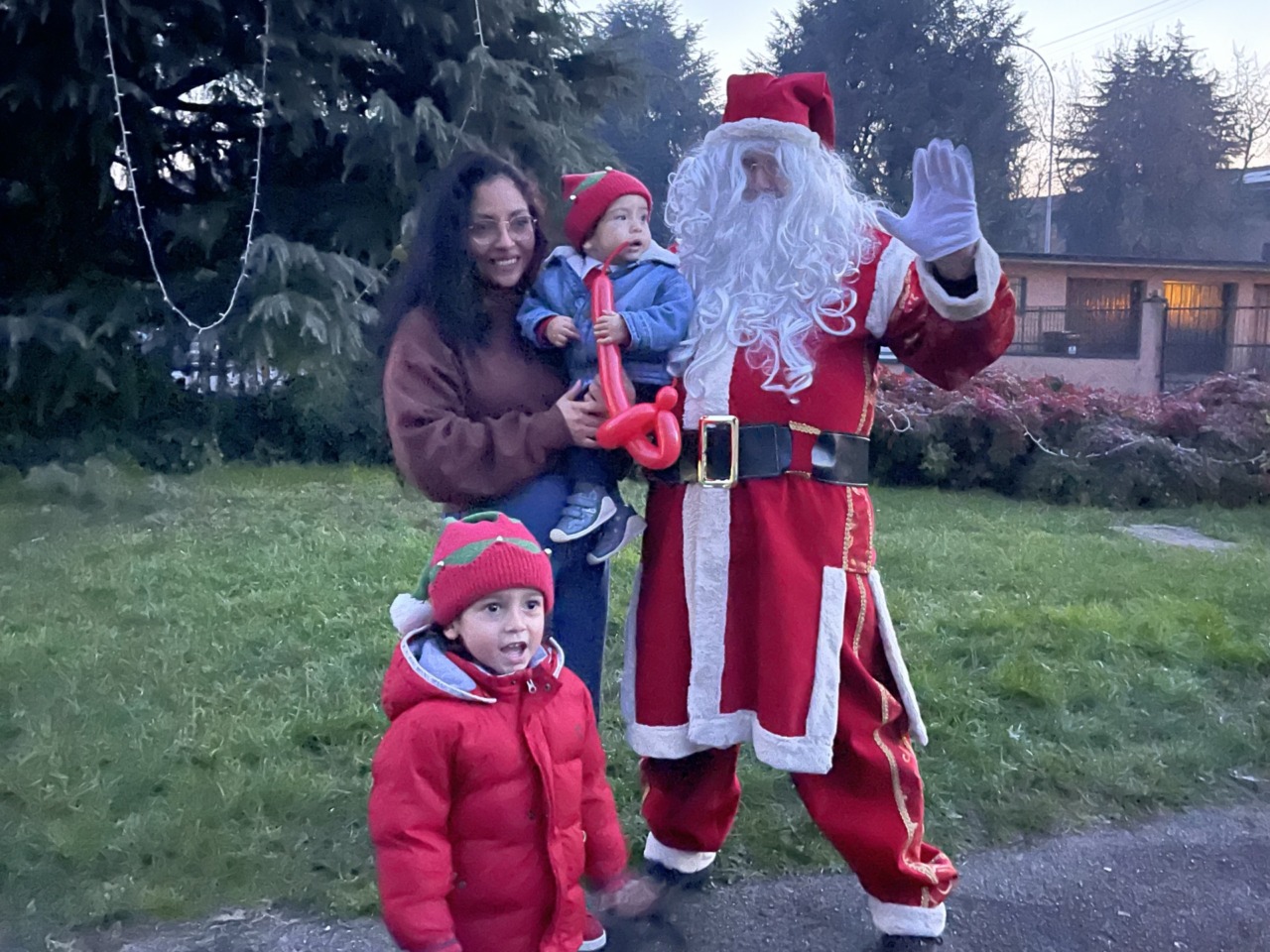 Il pomeriggio era iniziato con la lettura animata nell’ex biblioteca di via Viotti, dove i bambini avevano seguito con entusiasmo le storie raccontate da Nuove Prospettive Aps. Giochi, laboratori e la visita di Babbo Natale con gli elfi avevano già creato un’atmosfera incantata.