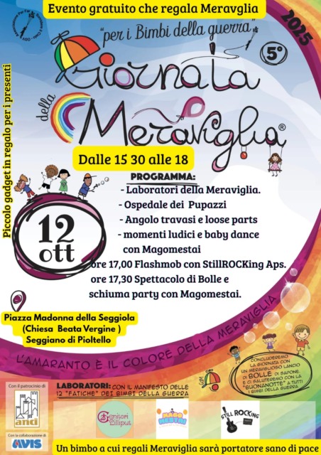 Torna per il quinto anno a Pioltello la Giornata della Meraviglia, manifestazione promossa dall’associazione Genitori Lilliput in collaborazione con Avis e il patrocinio di Anci.